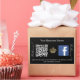 A stylish, classic black background. Decorated with a faux gold crown. Personalize and add your business name, your own qr code to your Facebook account and a text. White text. With the text x2: Follow us!