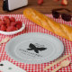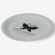 Black Butterfly paper plate featuring an elegant black butterfly with spread wings and a pair of curly antennae, all on a pale grey background and within a round white border, with custom text. © Morning 6