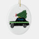 Black Cab Taxi Christmas Tree Drawing Snow Ceramic Ornament