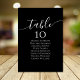Black Calligraphy Wedding Table Seating Chart Number
