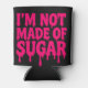 Cold drink, hot message. This black can cooler with neon pink dripping letters doesn’t just keep your beverage chill — it throws shade at anything soft. Featuring the bold quote “I’M NOT MADE OF SUGAR,” this cooler was made for those who don’t flinch when life gets stormy. Perfect for events, gifting, brand promos, or just flexing your vibe at the next BBQ.