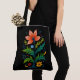 Black Canvas Folk Art Flower Tree Dark Boho Tote Bag