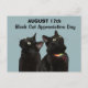 A reminder that August 17th is Black Cat Appreciation Day. Show your love and support for black cats every day of the year with this adorable postcard featuring two nearly twin black cats with beautiful matching green eyes named Ranger (left) and Mauser (right). These sibling cats sit back to back on this postcard. Perfect for every black cat lover.