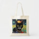 A.I .created print of a black cat with adorned with a detailed collar and bright yellow eyes is depicted against a starry night sky filled with swirling colors.