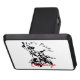 Wild party chick in black leather outfit on a motorcycle to customize, personalize by changing to your name on any background colour
