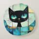 Black Cat Block art Round Pillow