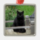 This beautiful ornament shows a black cat sitting next to a lantern on a rustic wooden bridge surrounded by green plants and flowers. Blackie, the cat, goes out to this bridge each morning and sits before beginning his day.