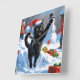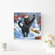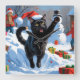 Black Cat Christmas Festive Snow Scene Square Wall Clock