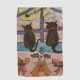These two cute black cats have been sitting patiently on the windowsill for Santa to arrive. It is Christmas Eve and the snow is falling hard. The house is decked with holly and seasonal bells for the holidays. Then the cat's patience is rewarded as they spot Santa in his reindeer sleigh flying across the face or the shining full moon. This is a colorful, festive Christmas watercolor that will add a note of fun and brightness to your holiday decorations.