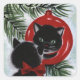 Black cat checking out his reflection in a Christmas tree ornament Square Sticker.