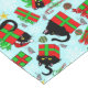 Cute Black cats in or around red and green Christmas presents with snowflakes against a light blue backdrop