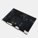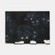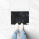 A group of black furry cats grouped all together in a big cuddle on a black and white tiled floor.