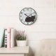 Little black cat with green eyes laying comfortably inside the green speckled clock design. A really cute clock design that is sure to be a fun accent for any wall decor. Personalize with your own text by replacing the sample text.