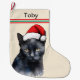 Cute black cat wearing a Santa hat. Personalize with your kitty’s name