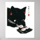 Black Cat Eating Sushi - Cat Japanese Art Poster