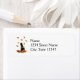 A black cat watches the coloured leaves fall on these autumn return address labels.