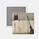 Black Cat Fence Witch's Broom Magnet