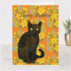 Watercolor painting of a black cat, flowers in background, Happy Birthday!