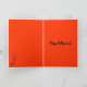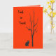 This Halloween card features a black cat under a bare black tree looking right out at you against a brilliant orange background. The image is repeated inside. All text is customizable.