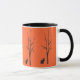 This Halloween mug features a repeating pattern of black cats under bare black trees looking right out at you against a brilliant orange background.