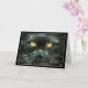 He has copper eyes that light up like lanterns in the night. Perfect as a greeting card or Halloween party invitation. Available on postage stamps, tee shirts and other products. Customize a message inside, if you'd like.