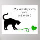 This design features the silhouette of a black cat. The cat is pawing at the tail of a lime green ball of yarn in the shape of a heart. This curious kitty can be found along with the text, “My cat plays with yarn and so do I.” Change or remove the text to make this product your own! ©2014 Jessica McConnell all rights reserved.