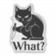 Add a touch of mischievous charm to your collection with this Black Cat Holding a Knife Sticker, featuring the word 'What?' beneath the design. Perfect for cat lovers with a sense of humour, this sticker captures the playful yet slightly sinister vibe of a sassy black cat. Ideal for decorating your laptop, water bottle, notebook, or any surface that needs a bit of quirky personality. Whether as a gift or for yourself, this sticker is sure to bring a smile (and maybe a laugh) to anyone who sees it!