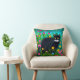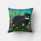 Black Cat in a Colourful Flower Garden Throw Pillow