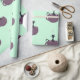 Black Cat in a Cup Green Wrapping Paper