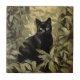 Black Cat in Lush Forest Tile