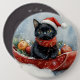 Black Cat in Sledge Let it Snow Christmas 6 Inch Round Button