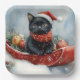 Black Cat in Sledge Let it Snow Christmas Paper Plate