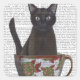Black Cat in Teacup by FabFunky. Features a cat sitting in a beautiful floral teacup. | 191389D