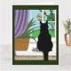 Black cat sitting on a window ledge looking out the window at the birds on the bird feeder. HD t.v. for cats