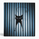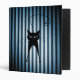Black Cat on Black & Blue Striped Avery binder. Great for back-to-school. High quality, durable and easy to personalize.