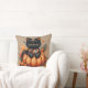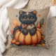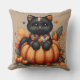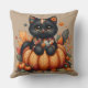 Black Cat on Pumpkin with Autumn Quilt Pattern Throw Pillow
