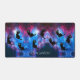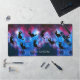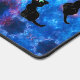 Dark theme with black cats pattern on space (blue, purple black) w/ kid's custom name perfect for room decoration on Halloween or for kids who love cats and space. This design is modern, and perfect for dark theme bedrooms or game room.