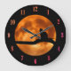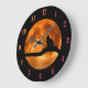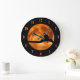 Black Cat Orange Moon Large Clock