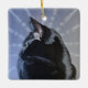 Beautiful black cat ornament to adorn your tree. Are those ice cicles in the background?