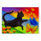 Black Cat Painting Butterflies Art - Multi