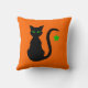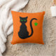 A silhouette of a black cat on an orange background. The cat sits with tail raised. A green star is attached to the tail.