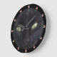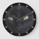 BLACK CAT PORTRAIT WITH EMERALD EYES,Pink Gemstone Large Clock