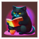 Black Cat Reading A Book Poster
