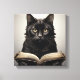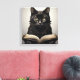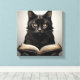 This canvas art has an illustration of a black cat reading a vintage book. Perfect for any cat lover or avid reader.