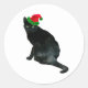 A black cat wears a red and green Santa cap on these holiday return address labels.