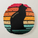 Black Cat Silhouette on Distressed Rainbow Round Pillow