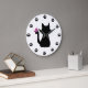Black Cat Silhouette Pink Butterfly Large Clock