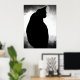 Backside image of black cat turning head to the side. Smoky hazy background.