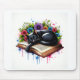Black Cat Sleeping on Book with Flowers Mouse Pad