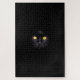 A challenging puzzle for a cat or animal lover! A black cat with golden eyes peers through a hole in the solid black background. Just its eyes and fur highlights break the dark design. Difficult but fun for any puzzle fan! Purrr-fect for Halloween! Designed by Tuzi Williams.